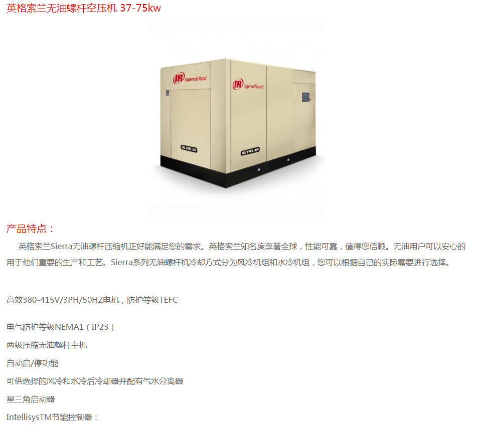 英格索蘭無油螺桿空壓機37-75KW